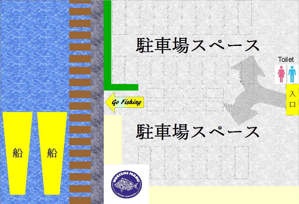 首都高湾岸線の本牧ふ頭(出口)で降り、直進して左折道になり、根岸駅を通過しましたら、「八幡橋」を渡ったところを左折、JR線路をくぐったところを左折、 突き当りが市民ヨットハーバーとなりますので、その隣りです。